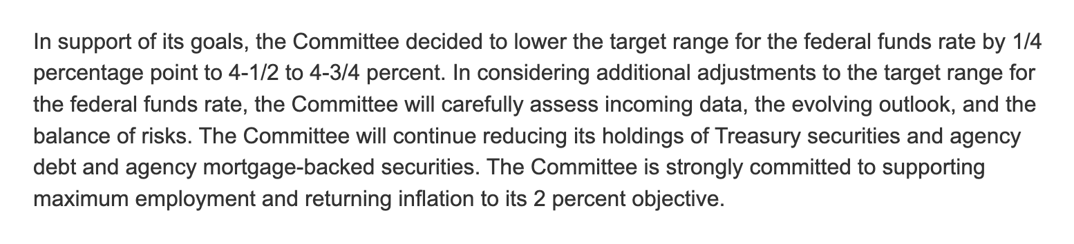 The Federal Reserve’s latest rate decision has resulted in a 25 basis point cut, bringing the target range down to 4.5-4.75% in response to easing inflation and a softening labor market.