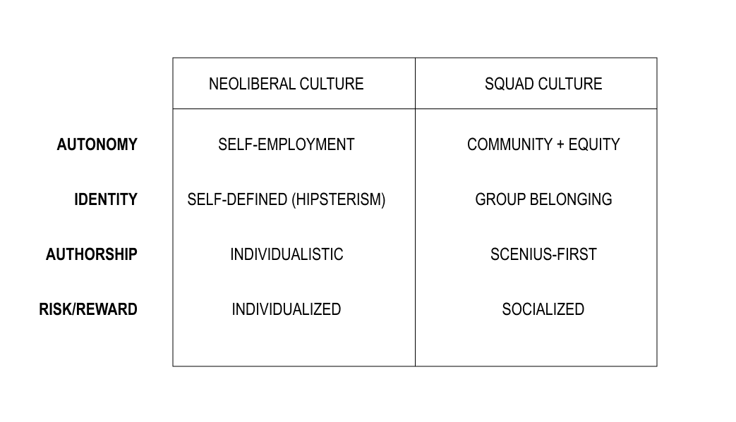 While there is a certain celebration of “doing things” in tech culture, the emphasis is on creative entrepreneurialism, which is why narratives like the “passion economy” are so easily ingested. Prioritizing financial reward for creative projects introduces all sorts of subliminal constraints that make it more difficult to coordinate trustfully as a group—and, it should go without saying, prevent much more interesting types of thinking. The strongest squads are layering on financial tooling in order to sustain themselves and what they care about, not because they’re gunning to be TikTok’s top hype house or the next PayPal Mafia.