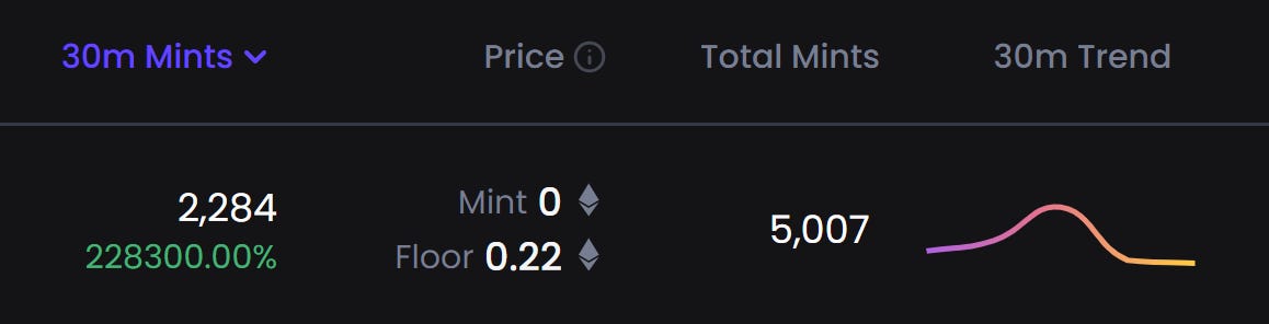 Want to try for yourself? Built by the team at zero.fun, Prometheans is a free onchain game with an ongoing open drop. The project looks interesting, and right now you can find it on Gem if you want to give the Mints dashboard a spin firsthand with a free mint.