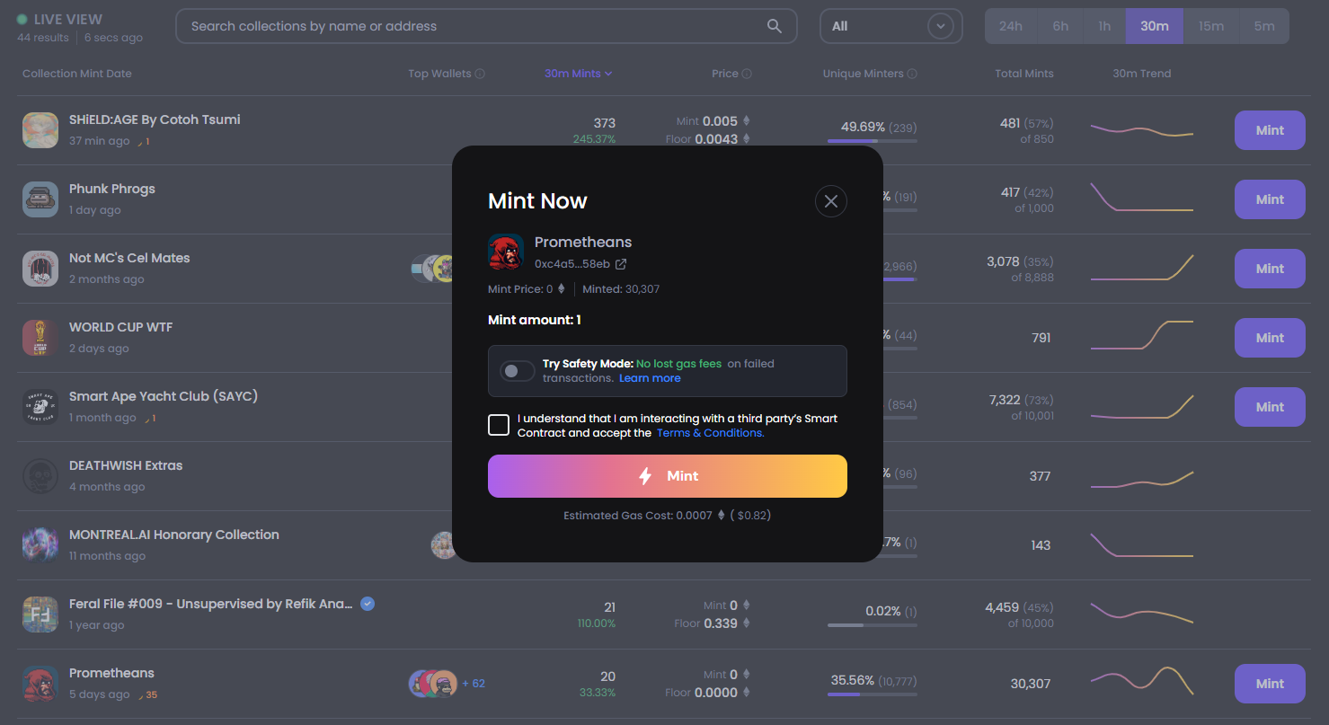 But did you know Gem also offers a Live Mints dashboard, which makes real-time discovery and minting around ongoing NFT drops a breeze?