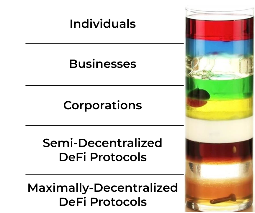 The thesis states that the more trustless, permissionless, and credibly neutral a protocol is, the further it can scale itself to a global platform, and as a consequence, absorb a larger amount of capital. Protocols that offer a platform to build upon become ‘dense’, and fall down to the bottom of the Protocol Sink from the collective weight of the people and companies building on them.