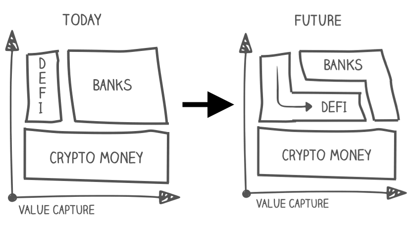 As a result, crypto-economic protocols are destined to fall below centralized companies in the Protocol Sink. Simple game theory suggests that centralized companies like crypto banks (e.g. Coinbase and Gemini) will leverage the power of decentralized protocols beneath them, in order to increase their value to their customers.