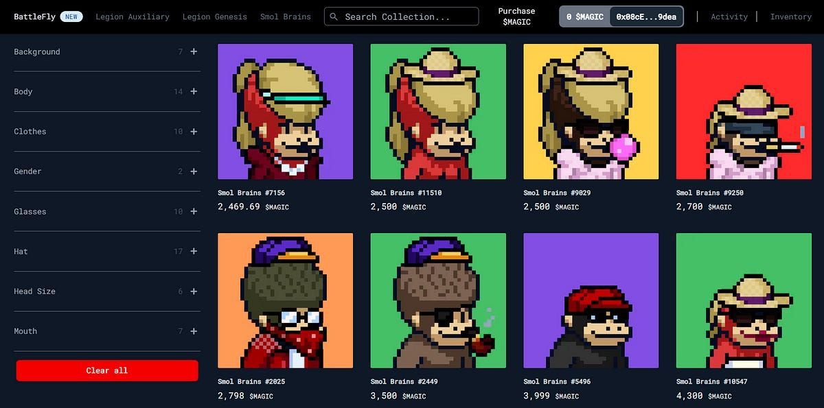 - Smol Brains — A popular “fair launched” NFT collection in the Treasure ecosystem, roughly analogous to Arbitrum’s version of CryptoPunks.