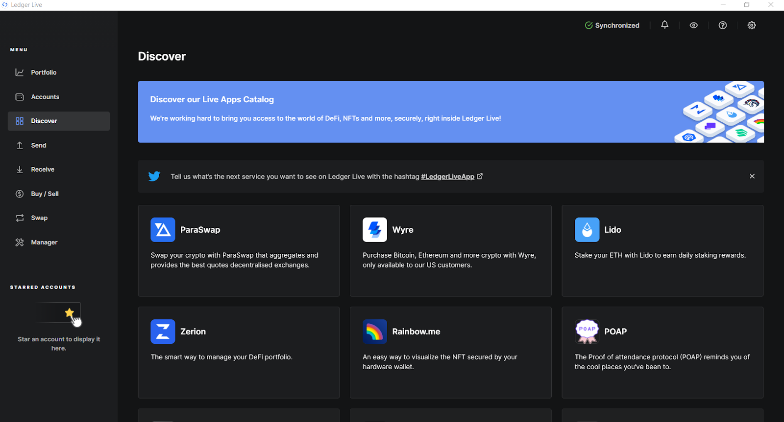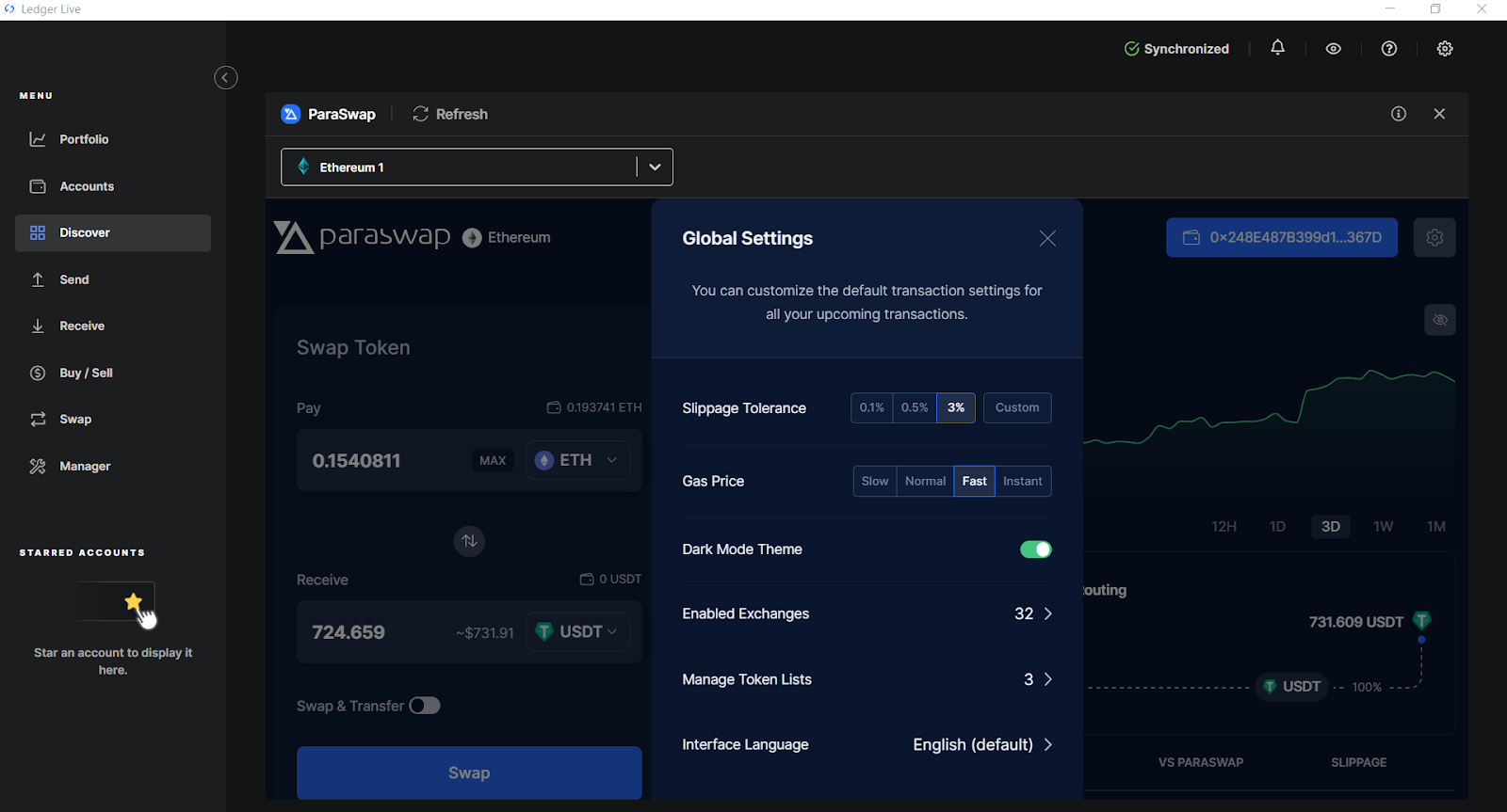 Ledger supports apps like Changelly, Paraswap, and 1inch directly within Ledger Live to make these swaps with just a few clicks.
