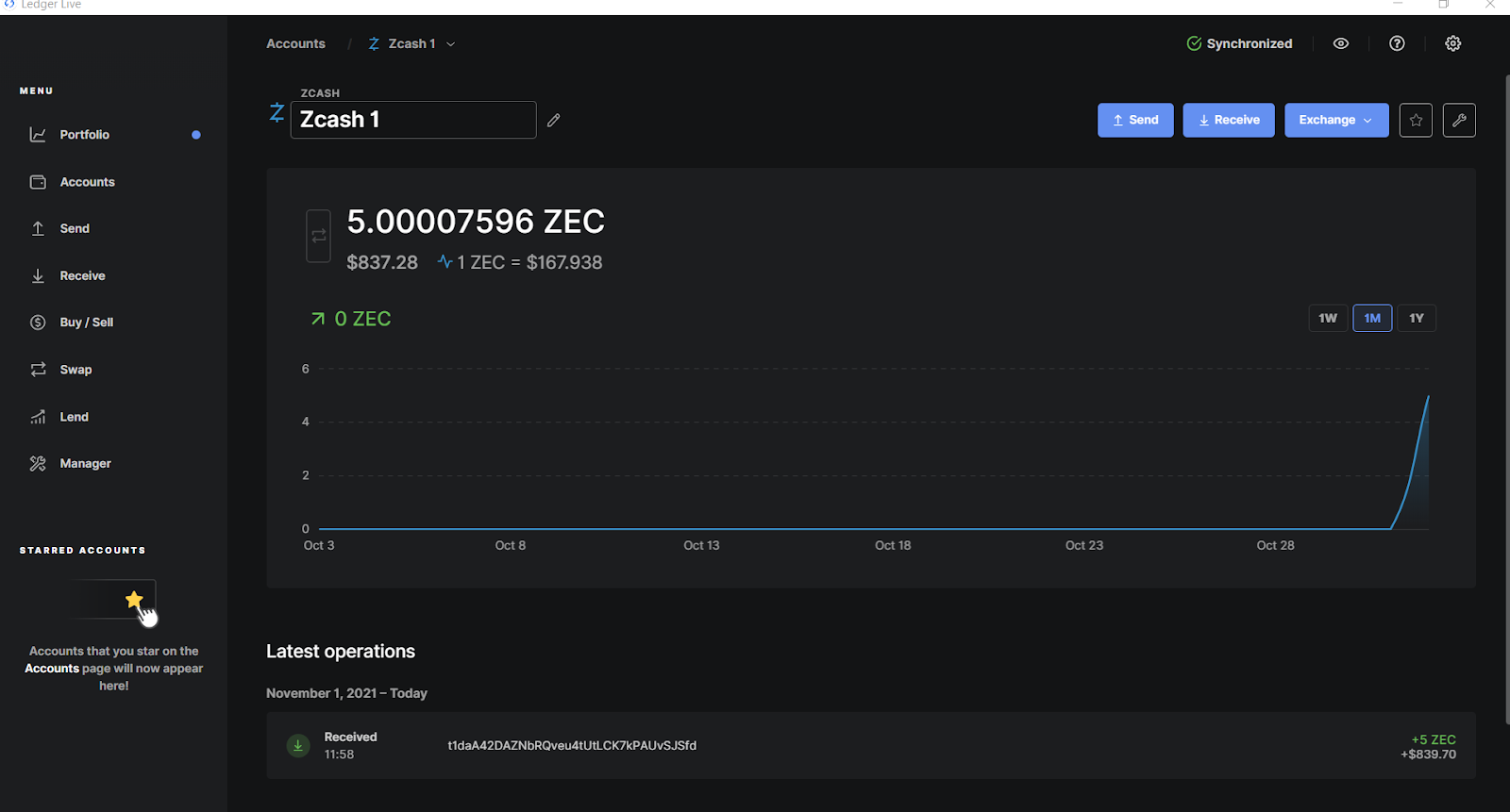 For this example, I’ll send some Zcash (ZEC) to my Ledger Nano X.
