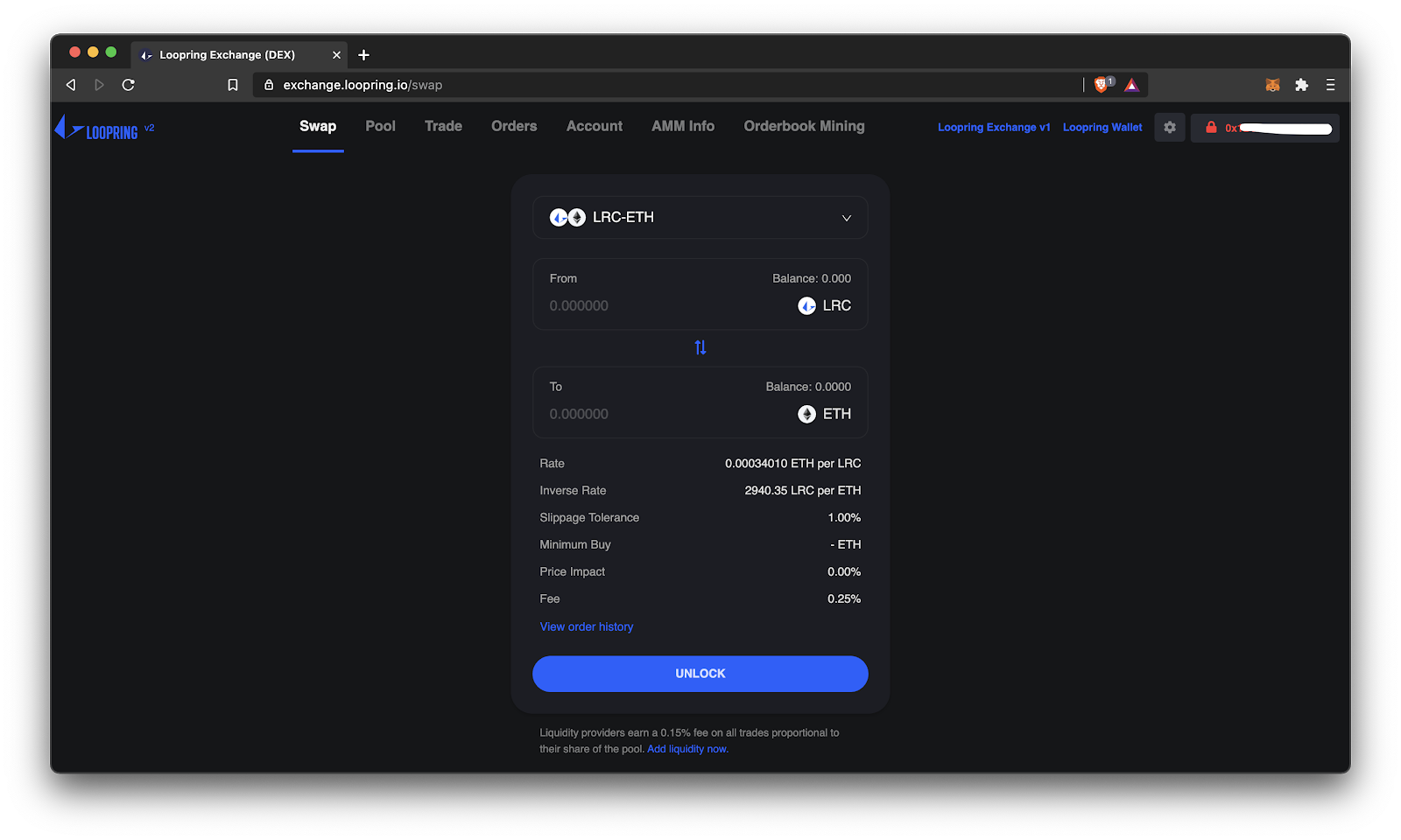 Currently, Loopring fees are 0.25% for the swap. 0.15% of that goes to liquidity providers (LPs), the remaining 0.1% goes to the relayer and protocol fee. Fees are taken from the token you are buying. Remember: there are no gas fees!