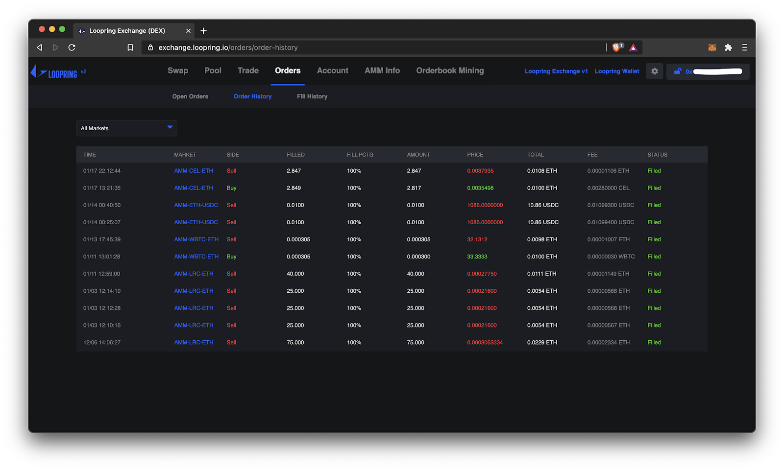 Once you’re ready, click ‘Swap’ and your transaction will be executed instantly. No delay, no gas fee. Your L2 balance will be updated. You can see your swap history and the fees you paid in the ‘Orders’ tab.