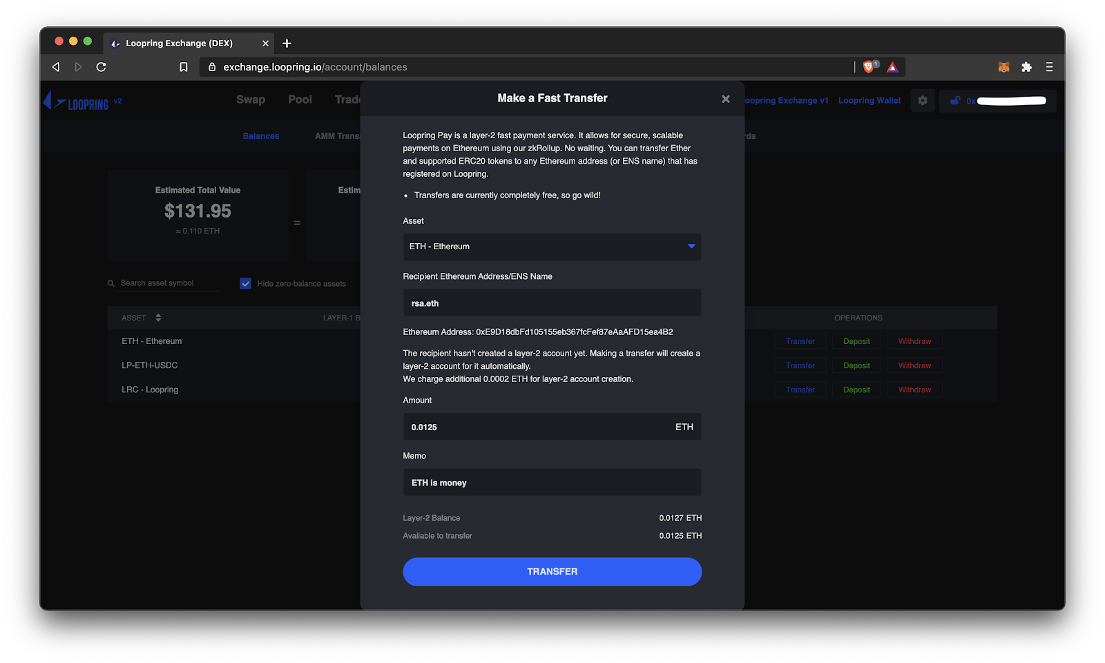 How to make instant transfers on Loopring