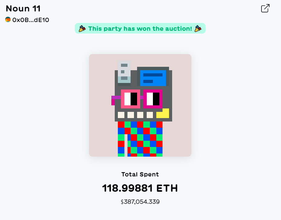 👉 Disclosure: I’m a fan of the Nouns project and participated in the Noun 11 PartyBid. I currently hold NOUN11 tokens and plan to hold them permanently as cultural artifacts if my fellow partiers permit so.