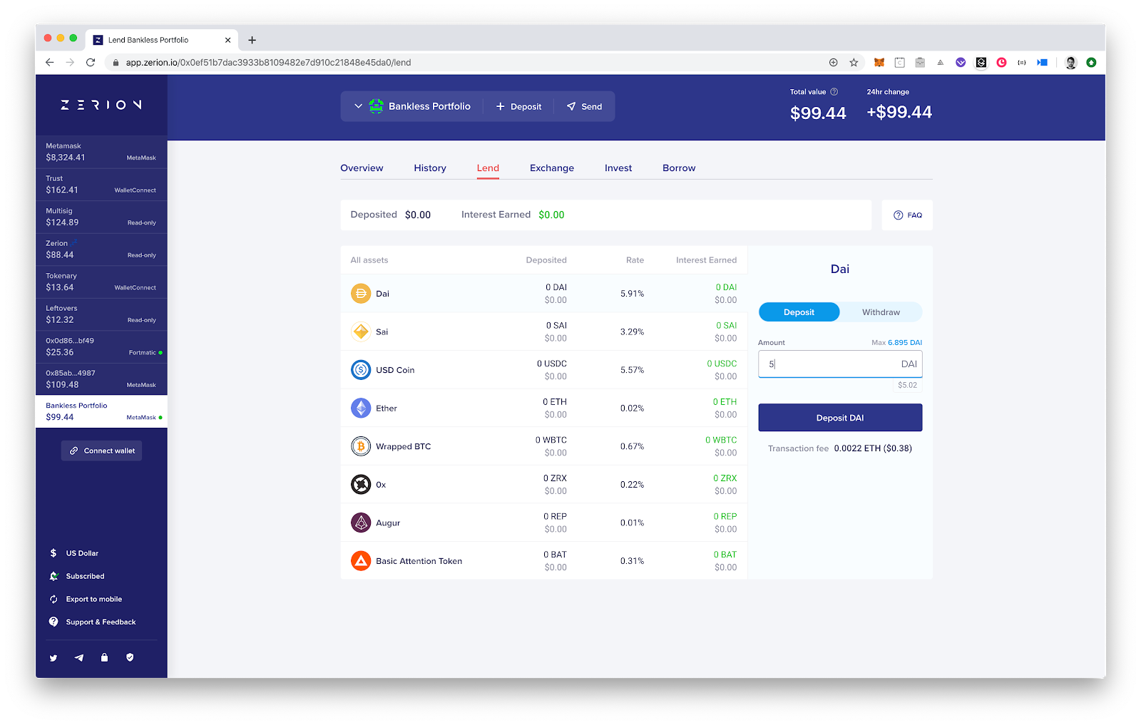 - For the purposes of this tactic, we assume that you have already installed MetaMask on desktop. You could also use mobile wallets like Trust Wallet via WalletConnect. If you don’t want to manage your own private keys, you can use Fortmatic wallet through Zerion sign up process.