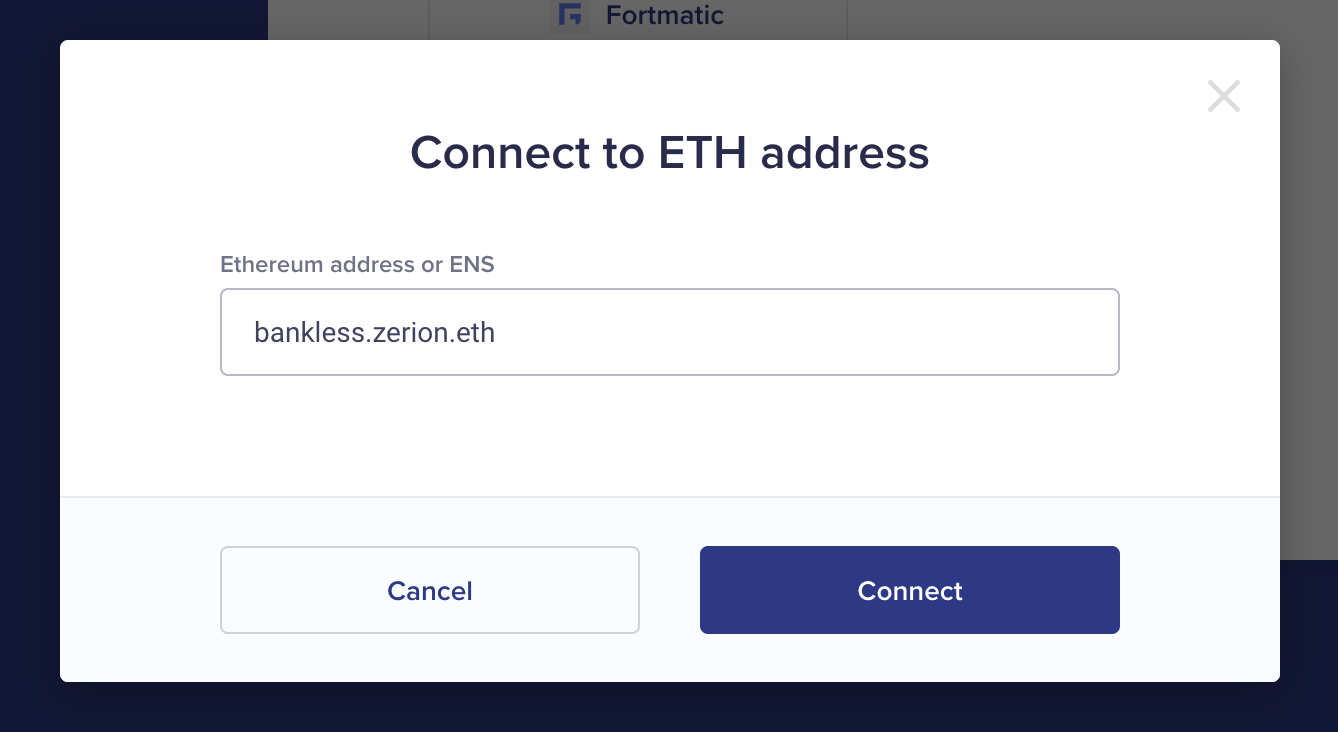 3. Put the ENS of the portfolio you would like to add (e.g. bankless.zerion.eth) and click connect.