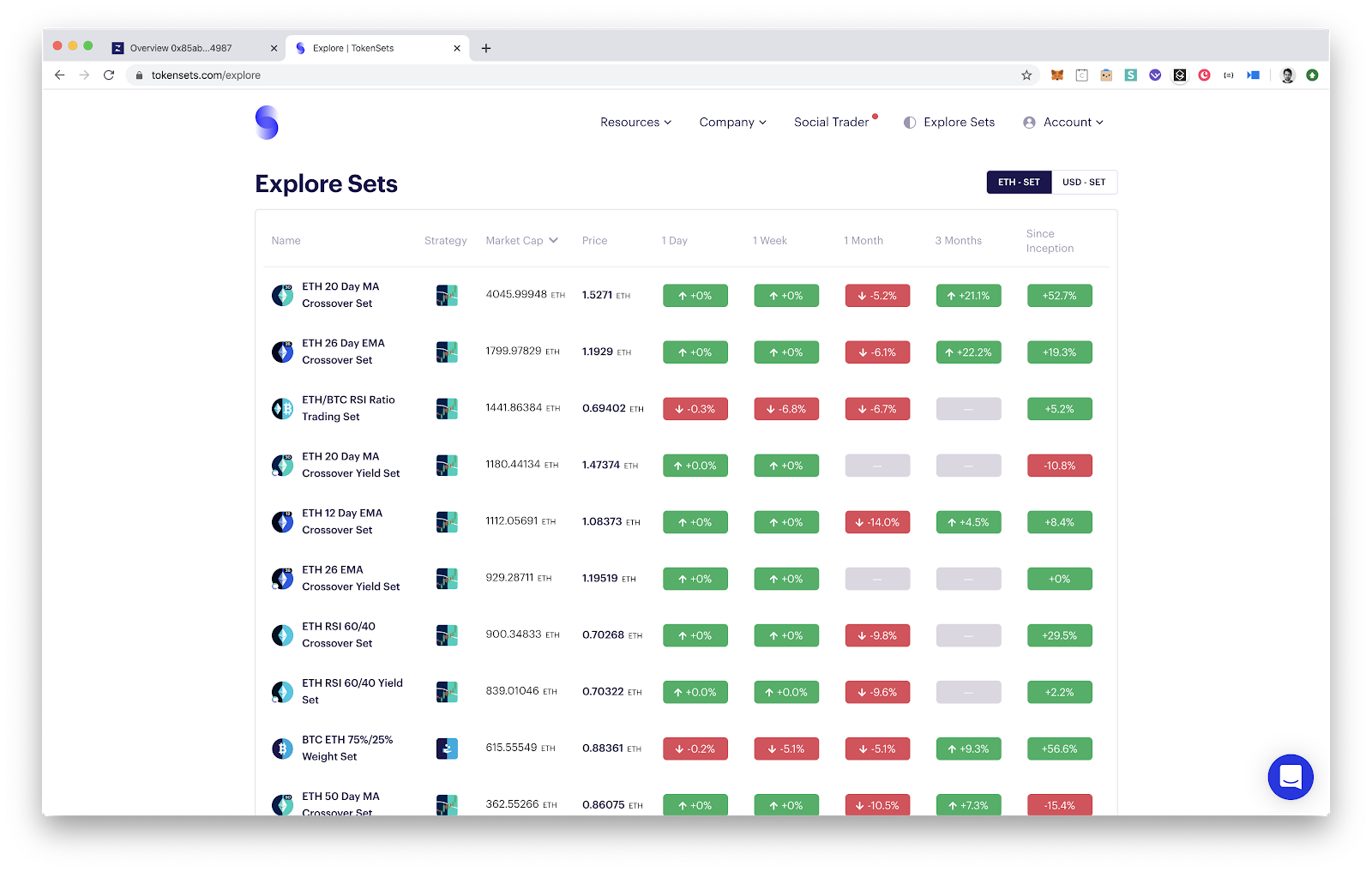 Open Tokensets and connect your Metamask account.