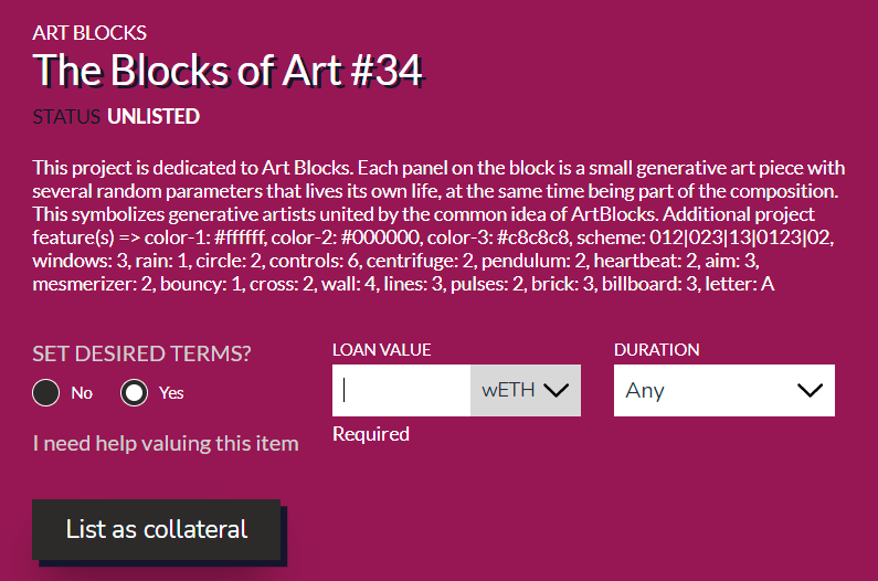 - Goal: Get loan collateral on NFTfi
