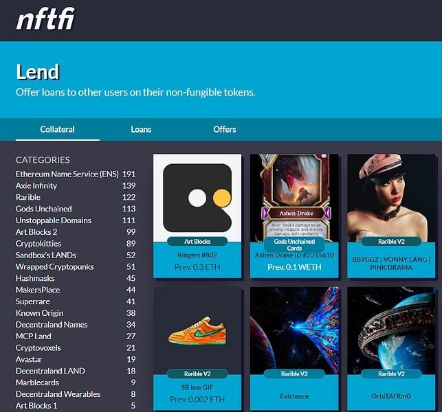 Again, it just all depends on what NFTs you’re working with. Go check out NFTfi’s Lending dashboard to get a sense for what kind of collateral types appear to be most popular currently.