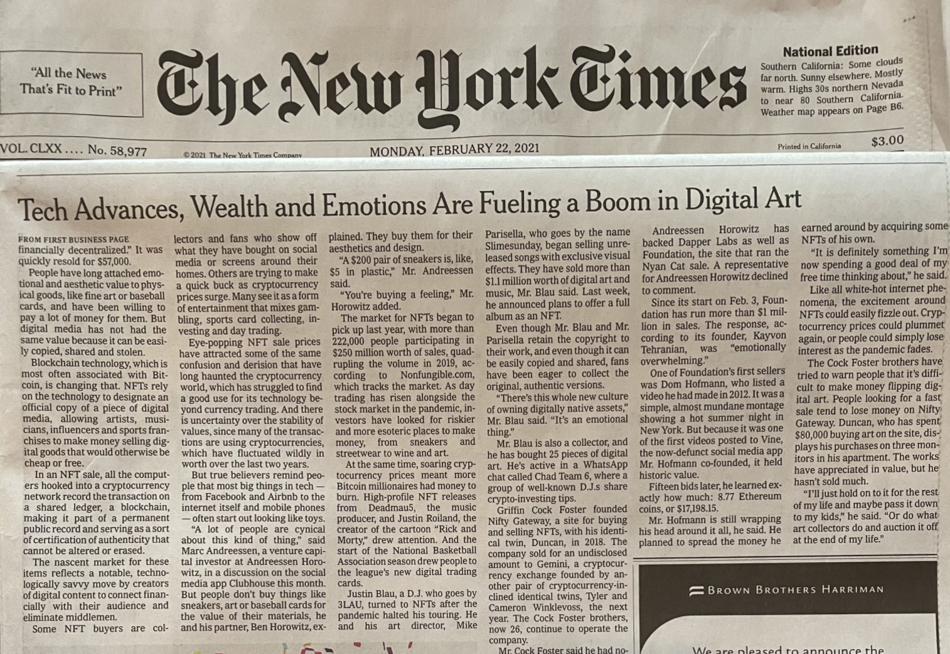 That’s where many people find themselves lately, both crypto novices and veterans alike. There’s no shame to your game no matter what walk of life you come from: everyone’s in the same boat right now trying to grasp NFTs and their potential, from small artists to big institutions.
