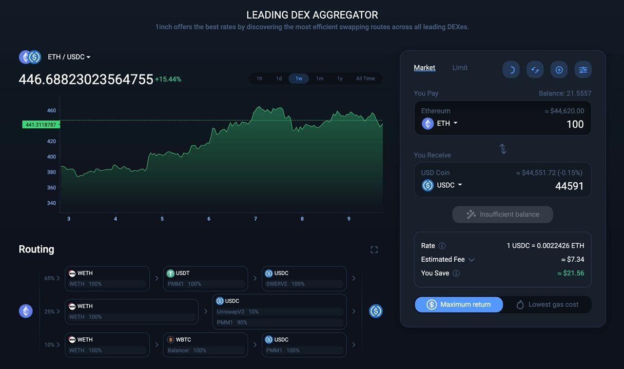 Tactic #65: How to get the best prices on trades with 1inch Exchange
