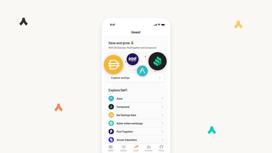 To earn interest we’ve also integrated Aave (see #5), another decentralized lending protocol that’s gaining traction fast; as well as Maker’s Dai Savings Rate.