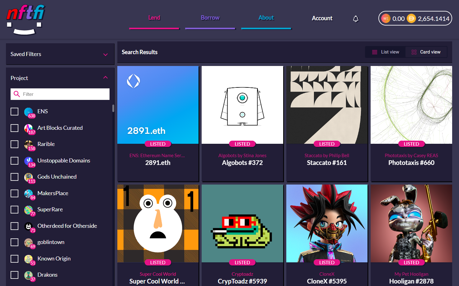 - Go to app.nftfi.com/lend/assets and connect your wallet