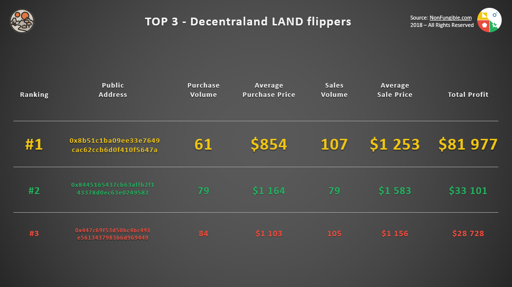(Above) Feb to September 2018 Trading in Decentraland. Mine is the top wallet.
