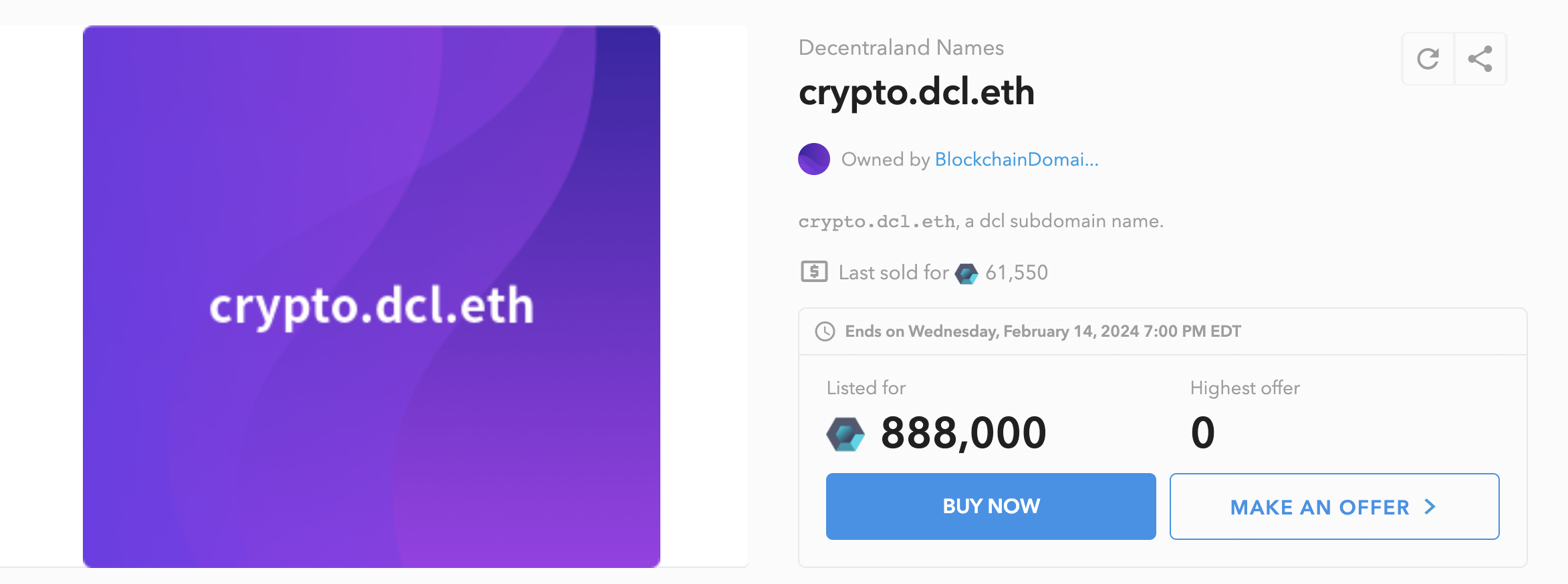 (Above) This Decentraland Name just sold for $1,500 5 days ago