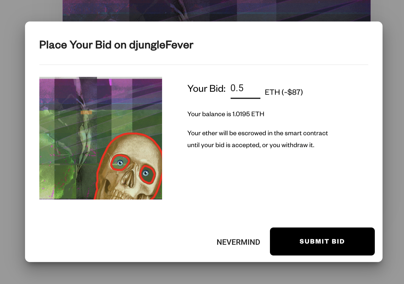 Once you’ve found 1-3 pieces that interest you and that you think will appreciate over time due to the above metrics and assessment, you can either place a bid in ETH, or, if the work has a “buy it now” price, you can simply purchase it with ETH.