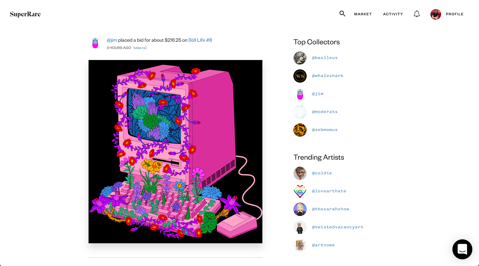 SuperRare is a collecting platform that authenticates digital artists, and enables them to create and launch authentic single-edition NFT artworks into the marketplace. As with any art, people buy it for many reasons including patronage, appreciation, cool-factor, and to speculate on future value.