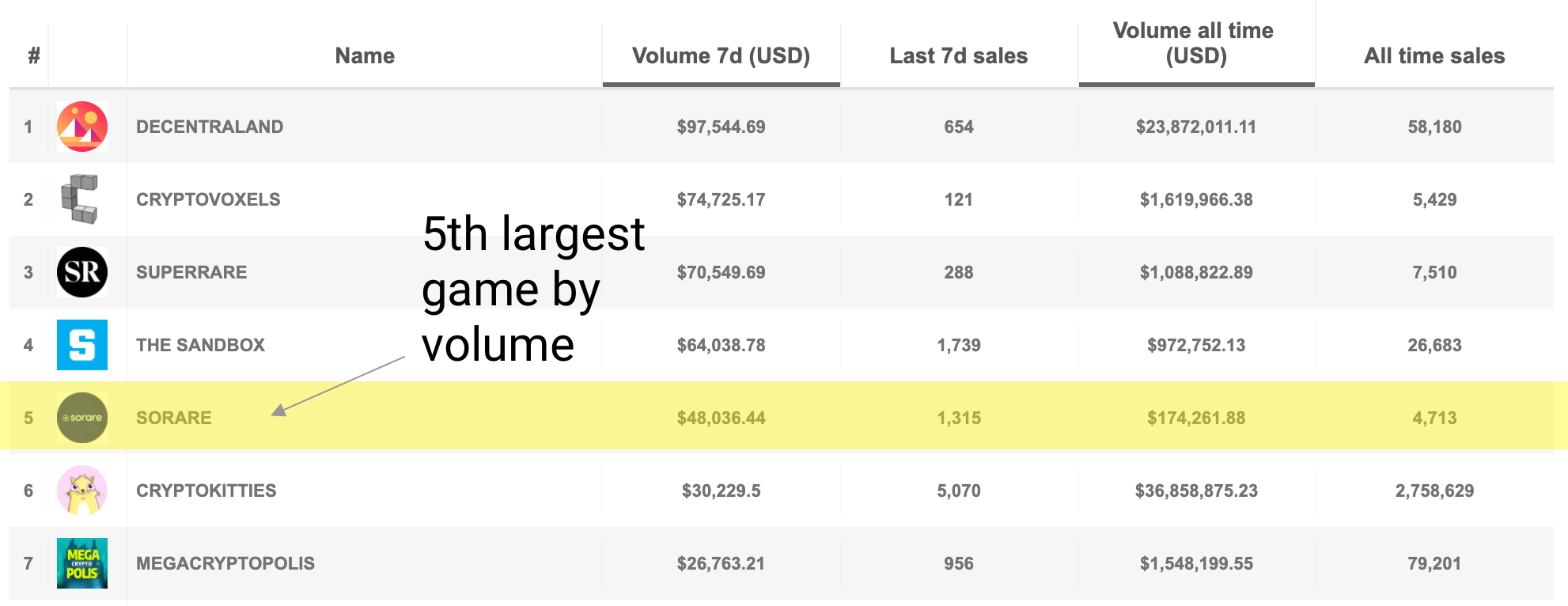 ⚠️ Note: Sorare recently migrated from Loom over to Ethereum so numbers on dApp radar have not been updated to reflect the change.