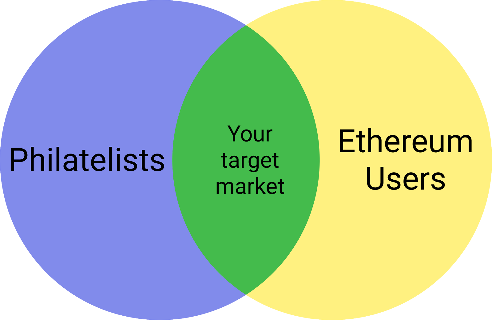 It’s a context-dependent matter, but here, our target audience is made up of those in the overlap between philatelists and Ethereum users:
