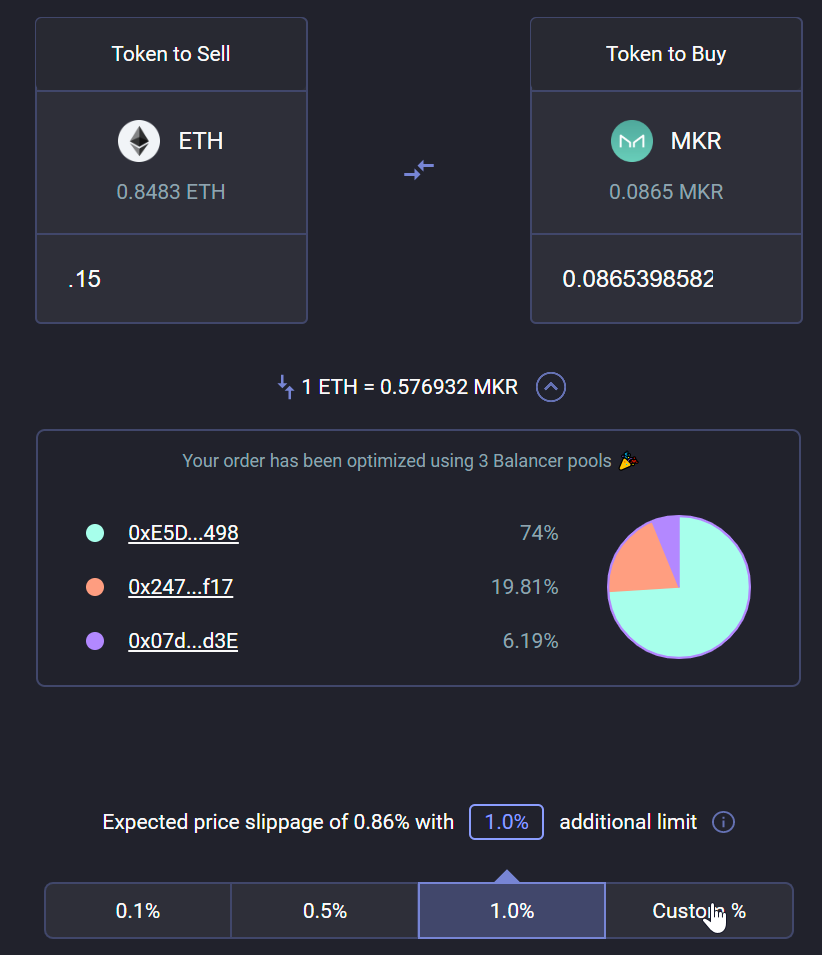 - As you start entering your ‘Token to Sell’ amount, Balancer will filter through applicable pools containing your requested tokens and spread your order using the most efficient allocation to provide the best possible price.