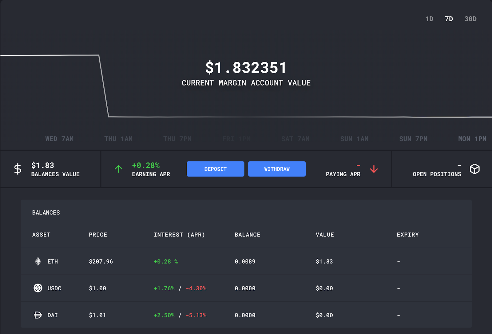 These interest rates change based on supply and demand, so you can always track each individual assets’ interest rate on the dYdX markets page.
