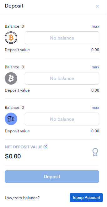 Head on to the sBTC pool on the Curve Dashboard and click on “Deposit”, and enter the amount of Bitcoin you wish to deposit.