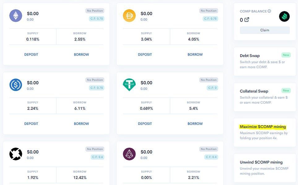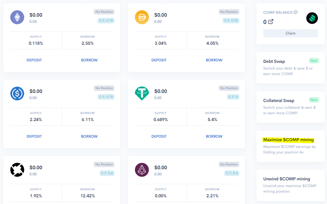 2) Maximize COMP Yield Farming