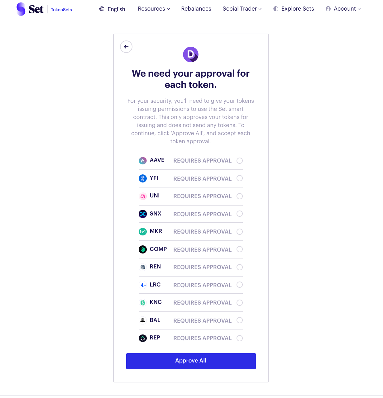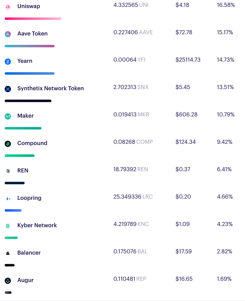 📝 The weightings for the DPI are constantly changing based on the market performance of the underlying tokens. Make sure to check the current portfolio weightings on TokenSets before minting!