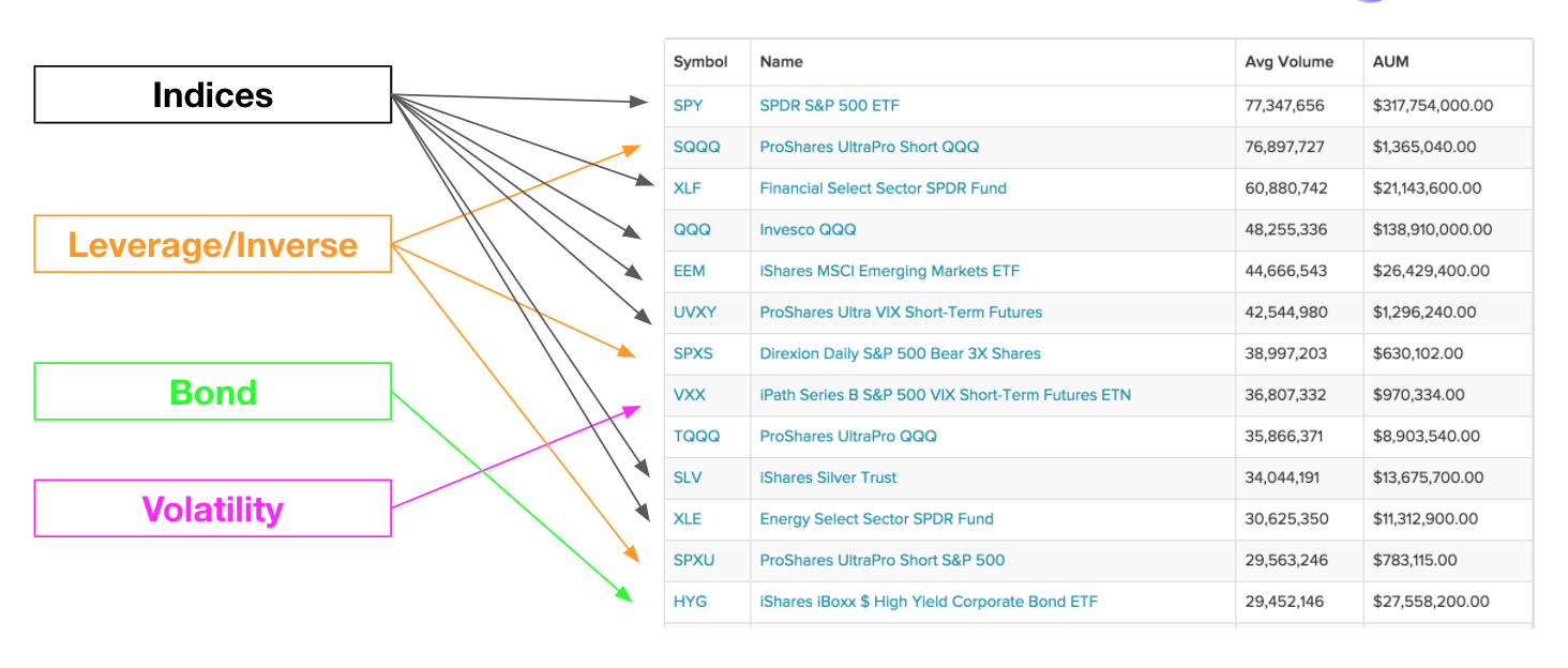 - Leveraged/Inverse Products: Financial products giving investors leveraged or inverse exposure. The key piece with these products is that investors don’t have to worry about margin requirements or liquidation risk.