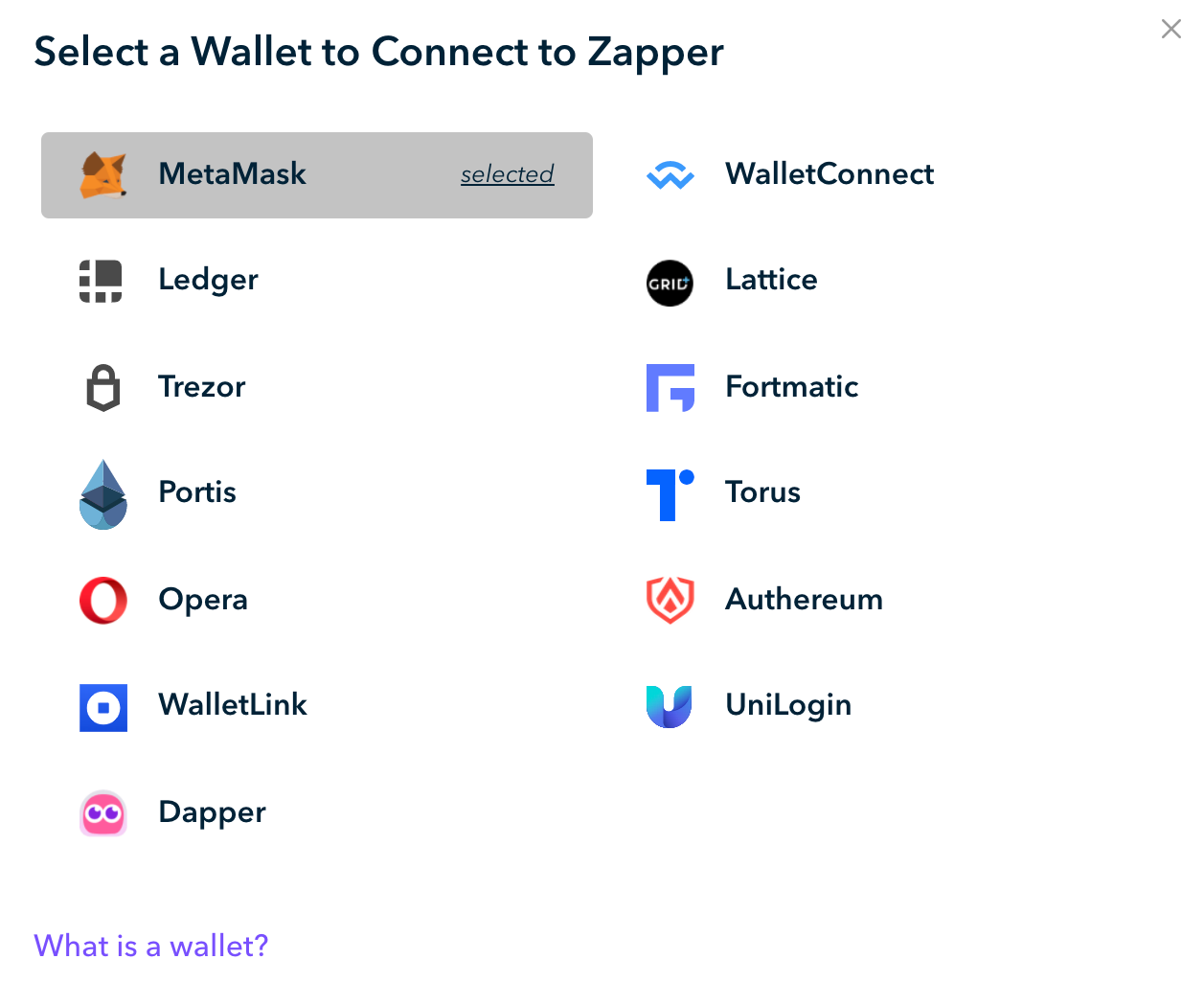 Step 1: Head on over to Zapper.Fi and connect your Ethereum wallet. They currently support a number of wallet providers including Metamask, Ledger, WalletConnect, Fortmatic, and others.