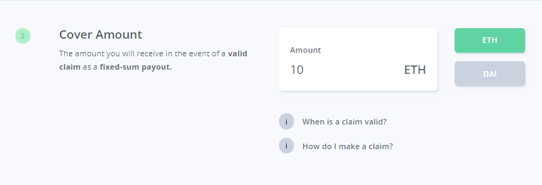 - Enter the cover amount and currency. You have the option to be covered in ETH or DAI!