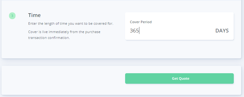 When getting a quote you will need to select which currency to purchase your cover in, either ETH or DAI, and select a cover period in days.