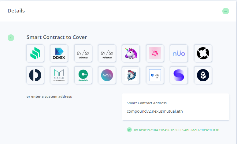 The first step is to understand which smart contract systems you’re using and what you need to purchase cover against.
