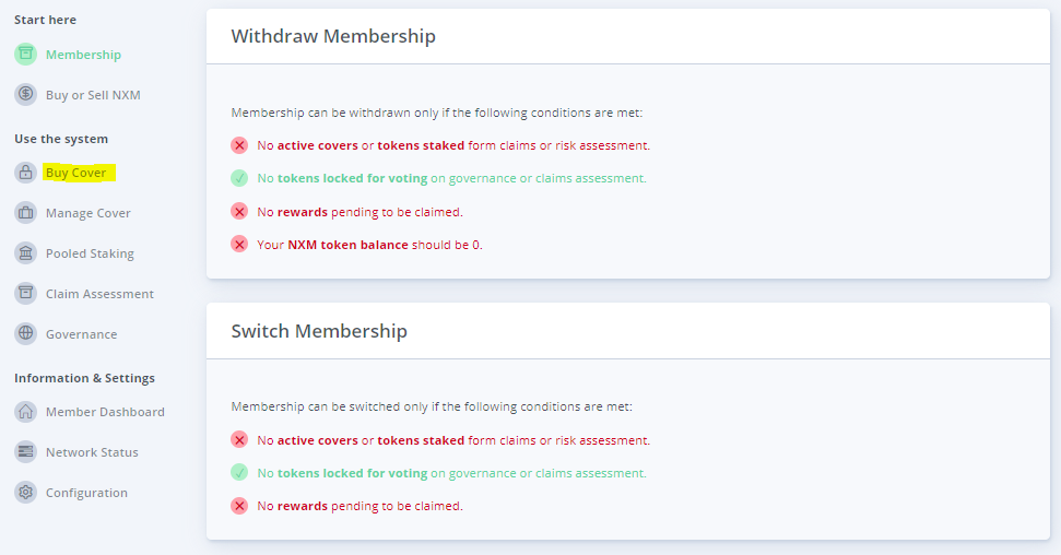 - Go to app.nexusmutual.io. Connect your MetaMask, and click the “Buy Cover” option on the sidebar.