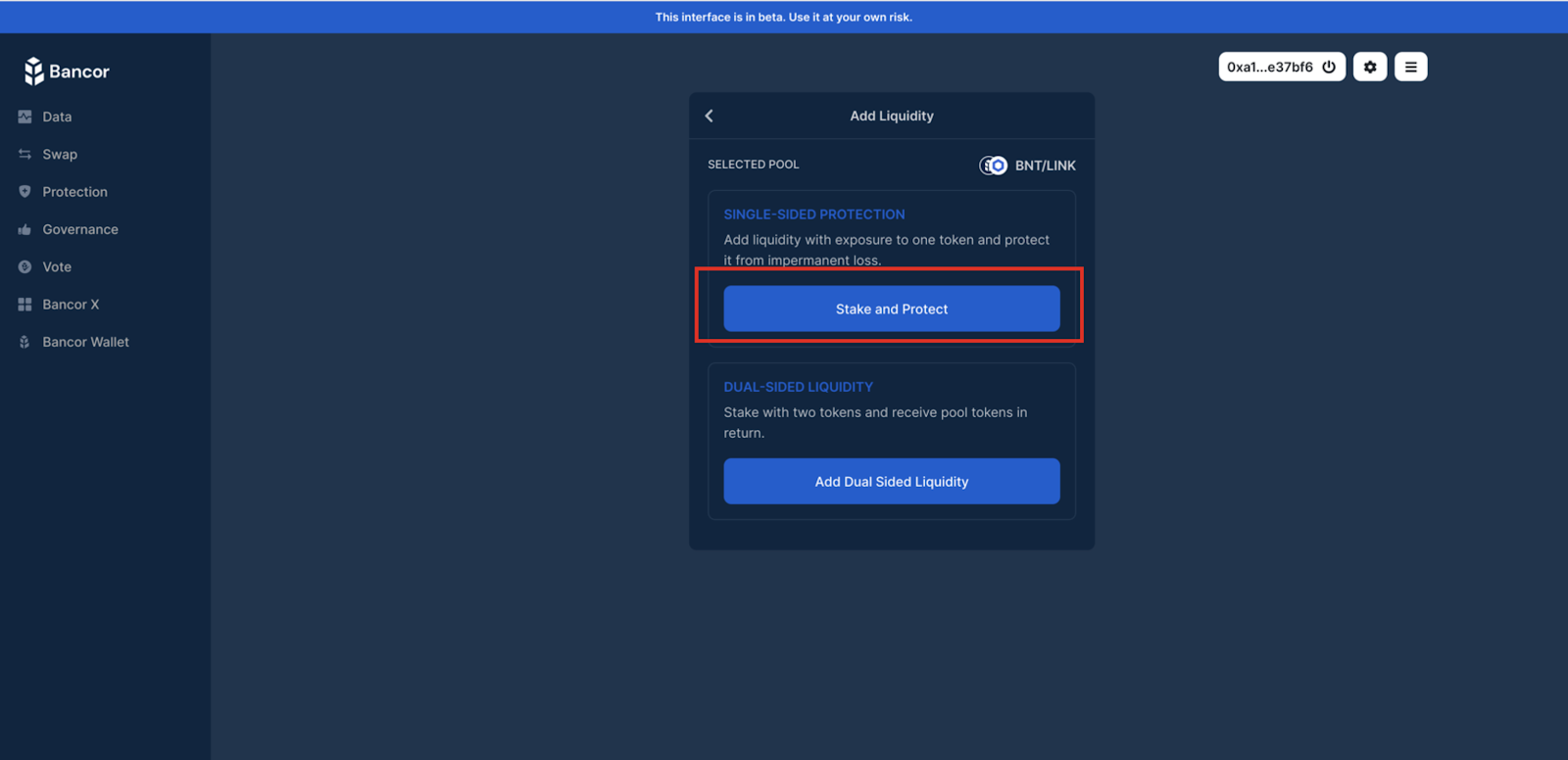 Step 2: Under the Single-Sided Protection option, click “Stake and Protect”.