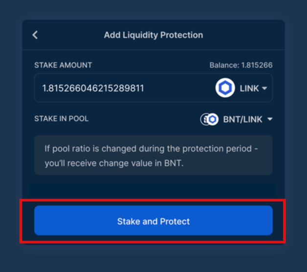 Step 4: Click “Stake and Protect” and confirm the transactions in the app and in Metamask (x2).