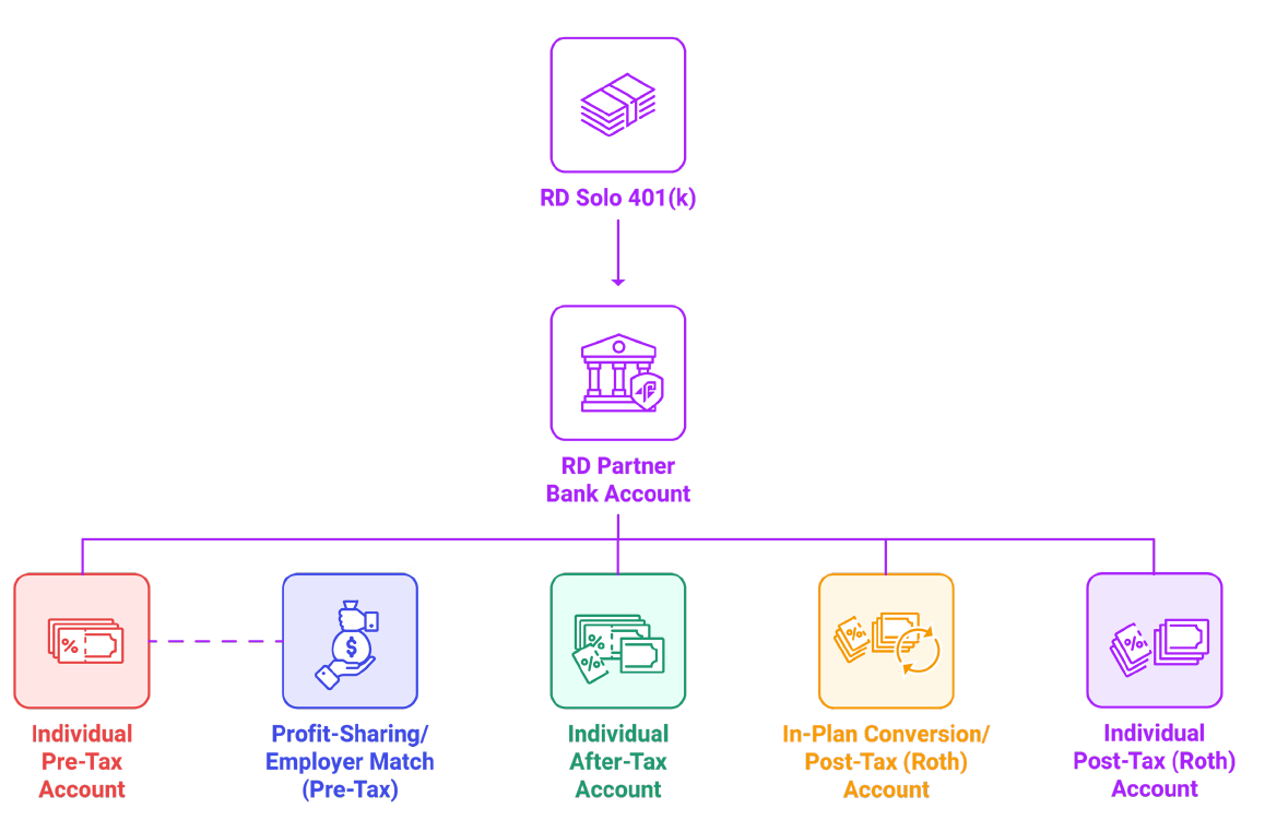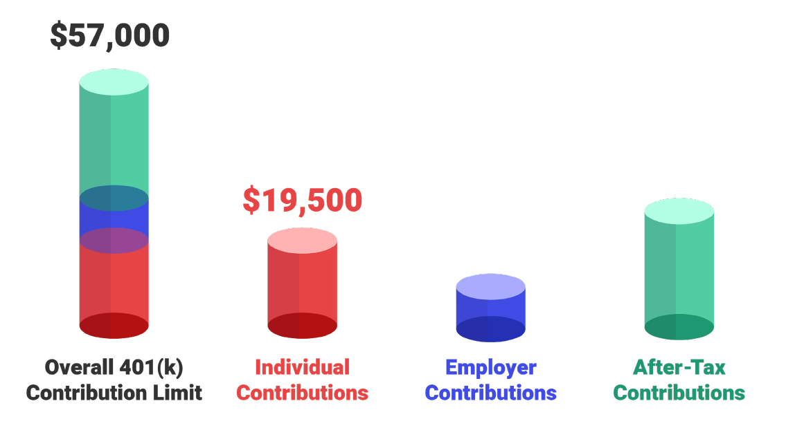 Think of the accounts in your 401k structure as buckets. Each bucket has dollar limit. You can’t fill above the dollar limit. And each bucket has rules.