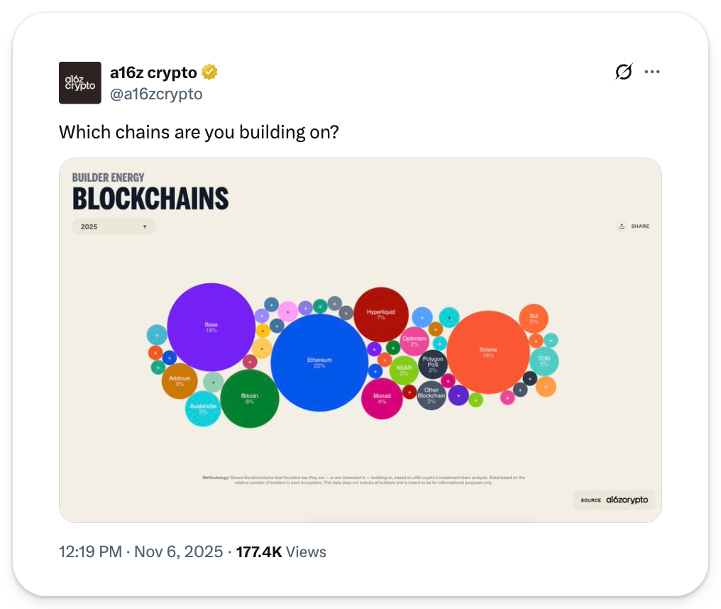Think about this question posed by a post on a16z crypto’s X account for a second: "Which chains are you building on?" And it shows exactly what’s so wrong with this thinking around chains.