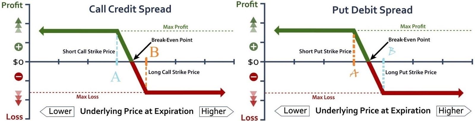 There are two types of bear spreads: Bear Put Spread and Bear Call Spread. Both strategies work the same way: by buying options at a strike price and selling an equivalent number of options at a lower strike price. By doing so, these spreads create limited profit and limited loss trading strategies for investors that are moderately bearish.