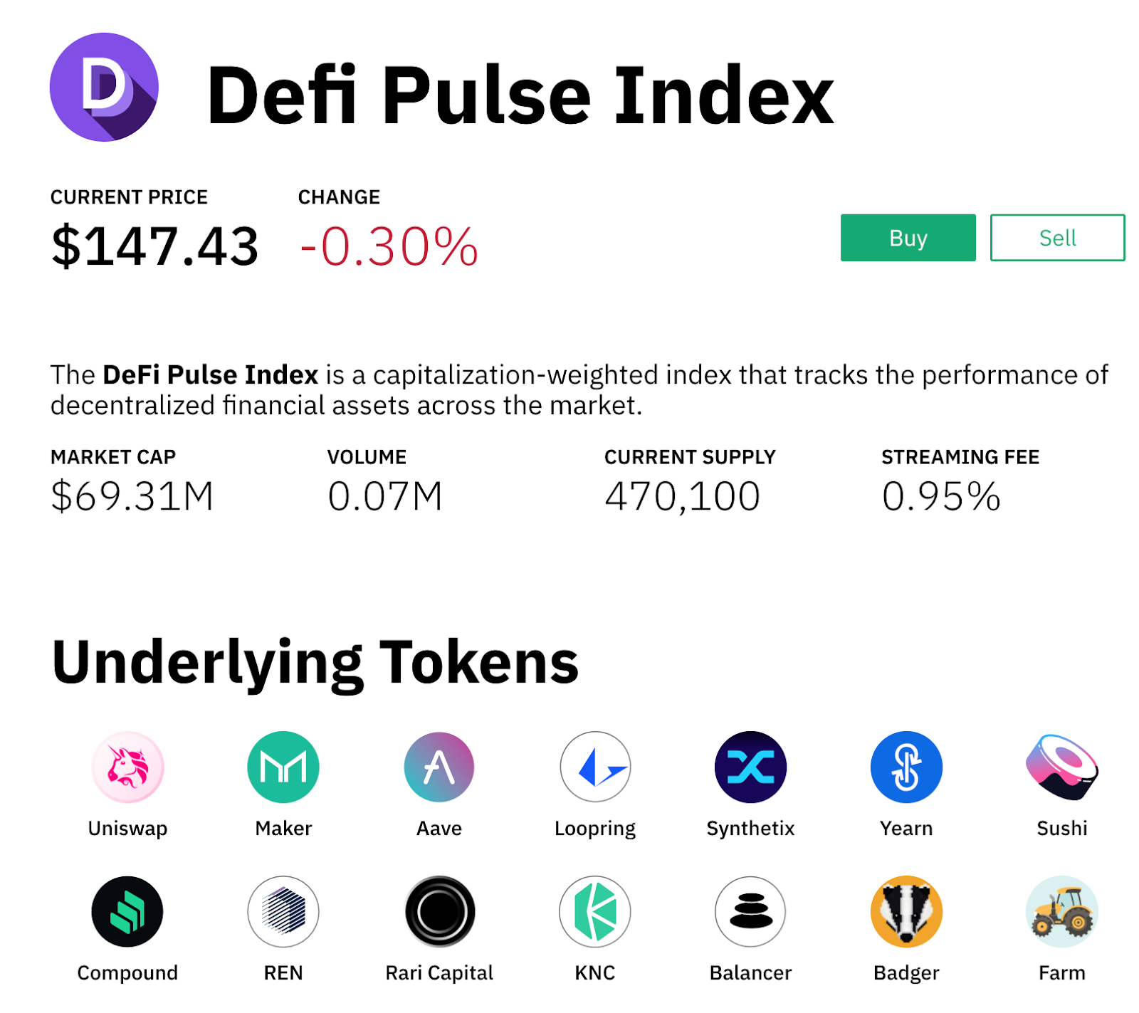It’s one thing to diversify into a specific token. But what about an index? Indices are a basket of tokens, meaning they represent a microcosm of diversification itself. For example, Index Coop’s DPI token captures blue-chip DeFi tokens into a single basket token, spreading the risk and return of battle tested DeFi protocols across a multitude of tokens.