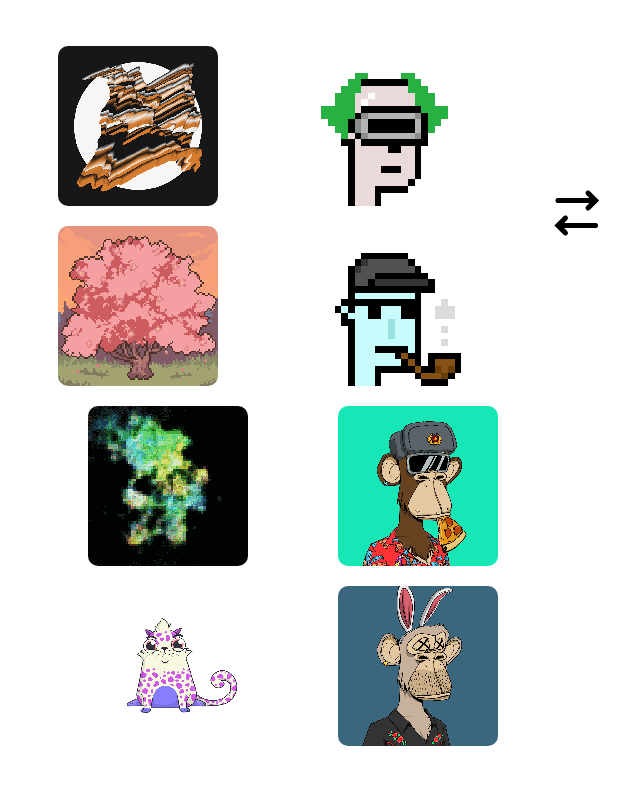 Let’s say a colleague who’s into NFTs approaches you with a proposed trade, i.e. a specific set of their NFTs for a specific set of yours.