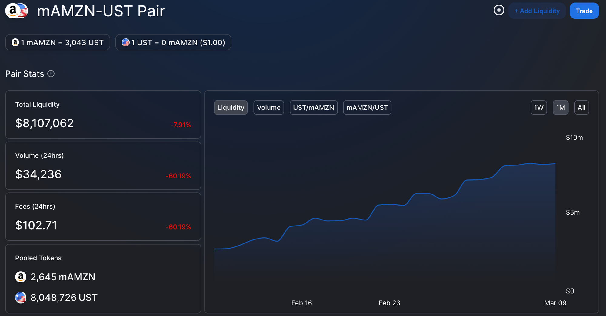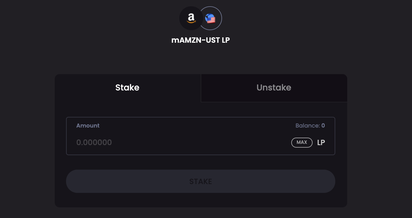 All you need to do is head over to Uniswap, type the desired mAsset/UST pair (let’s say mAMZN) and you’re ready to go—just execute any normal Uniswap transaction!