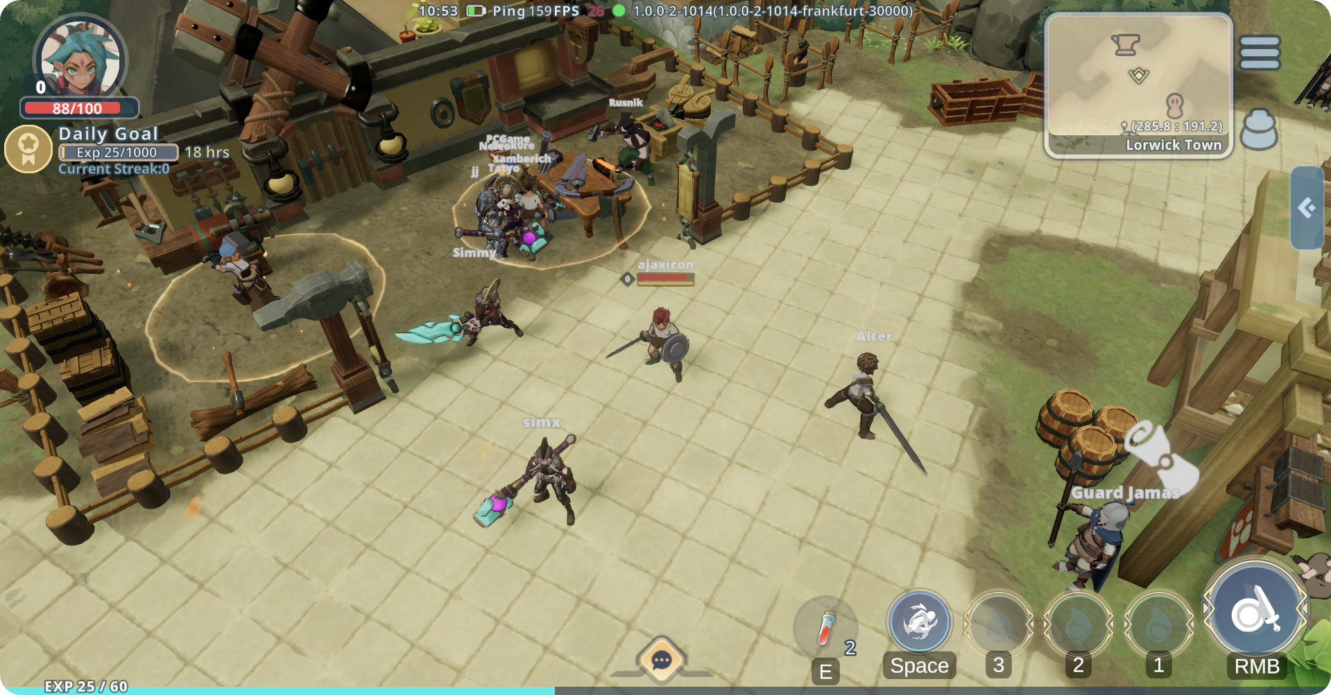 Speak to Nicolo in the center of Lorwick (e.g. on the computer "F" key is the interact button), who will send you to retrieve some logs and pebbles. You can find these resources right outside Lorwick to the southwest.