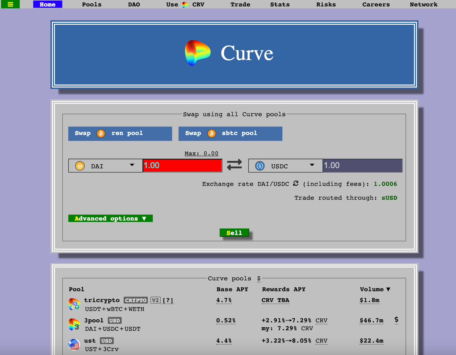 As the tokens in Curve pools are intended to have no or identical movements in price, the risk of impermanent loss is substantially decreased.