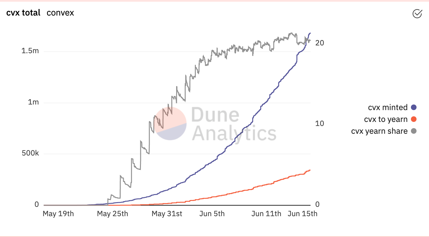 That’s because a considerable portion of Convex’s TVL comes from Yearn itself, as 33 of Yearns Curve LP vaults are utilizing strategies that involve depositing capital into Convex. In fact, Yearn is currently earning over 20% of the total CVX rewards that have been paid out.